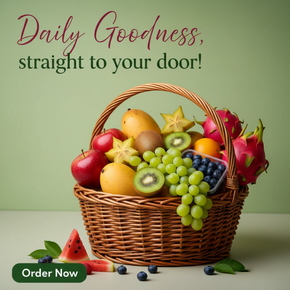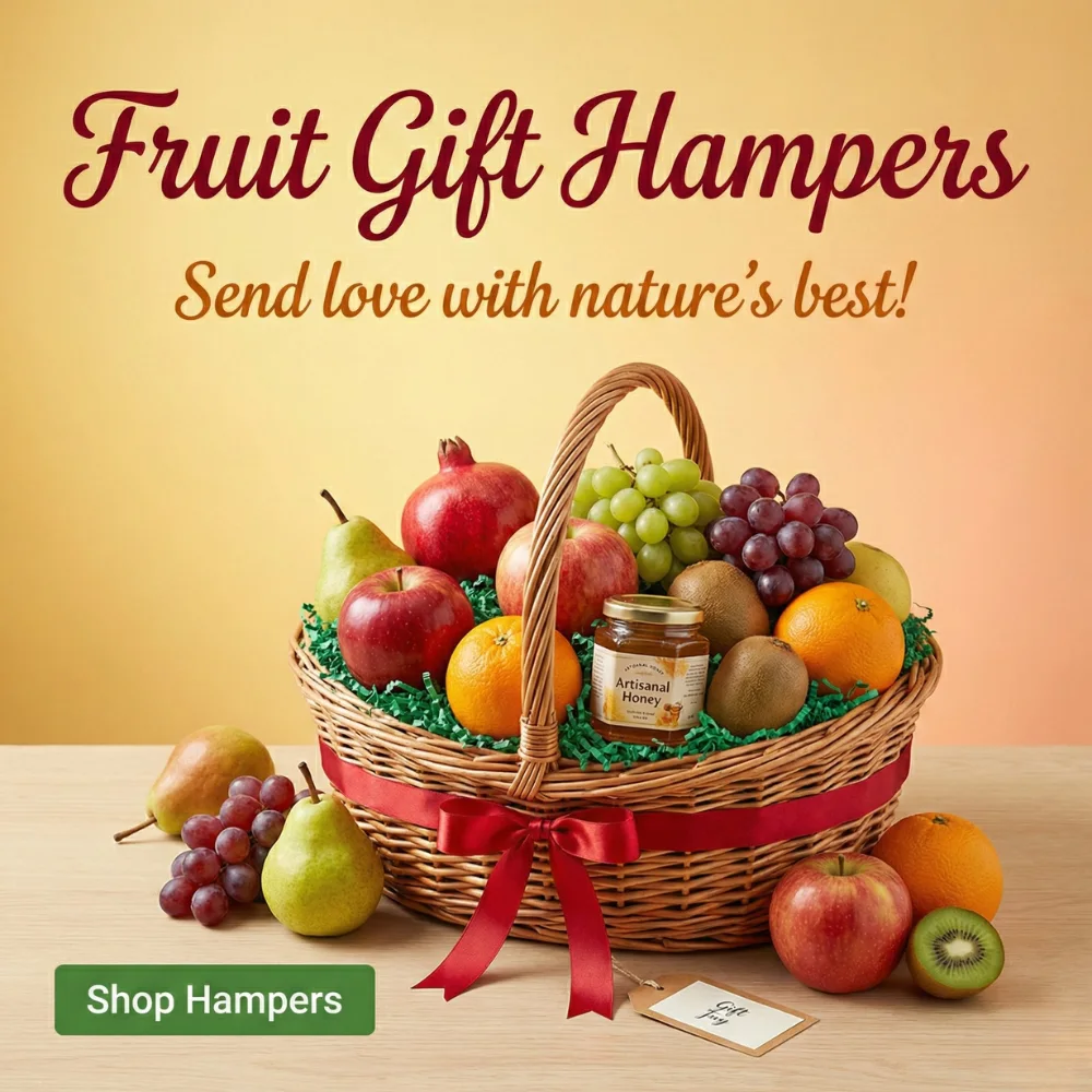 We specialize in premium everyday fruits like Peri Mango, Dragon Fruit, Raspberries, and imported options such as South Africa Mango and Plums, plus gift hampers and bulk orders.